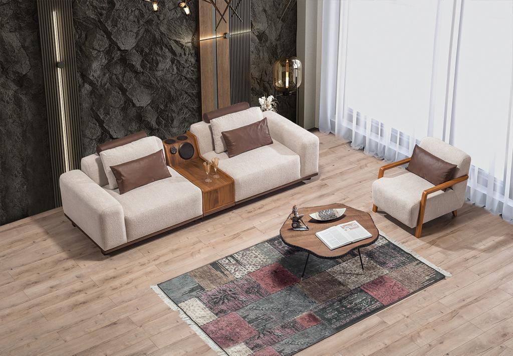 Beige Sofagarnitur Moderne Luxus Sofas 3+2 Sitzer Poslter Sessel 3tlg. Set