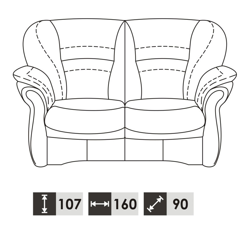 2 Sitzer:    ca. 160 x 107 x 90 cm