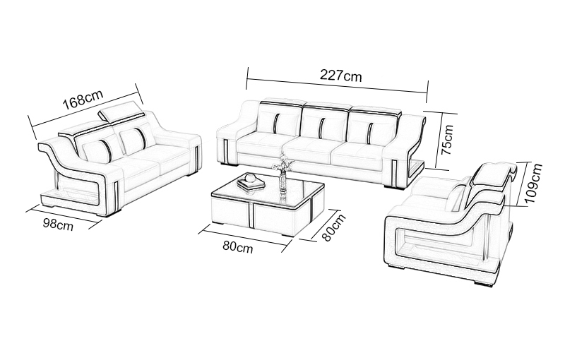 Leder Wohnzimmer Garnituren Couch Set Sofas Couchen Sofagarnitur 3+2+1 mit USB
