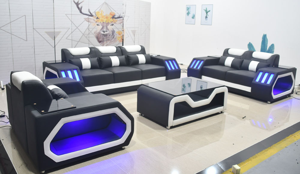 Sofagarnitur Couch Set 3+2+1 + Tisch Ledersofa Sitz Beleuchtete Design Polster