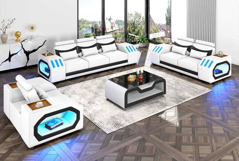 Schwarze Sofagarnitur, moderne Möbel, Sofagarnitur 3+2+1