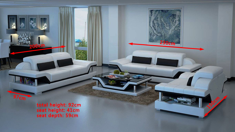 Erfrischen Sie Ihr Wohnzimmer mit unserer modernen Sofagarnitur 3+2+1 Sitzer! Hergestellt aus Premium Lederfaserstoff (70% Leder / 30% Polyester), bietet diese Polstergarnitur ein stilvolles Design und optimalen Komfort. Wählen Sie aus einer Vielzahl von Farben, darunter Ocker, Marineblau, Schokolade und mehr. Die Maße variieren je nach Modell: 1 Sitzer (150 cm x 97 cm x 92 cm), 2 Sitzer (200 cm x 97 cm x 92 cm) und 3 Sitzer (230 cm x 97 cm x 92 cm). Die Sitzhöhe beträgt ca. 41 cm und die Tiefe ca. 97 cm. Optional können Sie zwischen verschiedenen Materialgruppen wählen, darunter Premium Echtleder und Premium Textilstoff. Das Innengestell besteht aus echtem Holz und bietet zusätzlichen Federkern-Komfort. Bringen Sie Eleganz in Ihr Zuhause mit dieser hochwertigen und modernen Sofagarnitur!