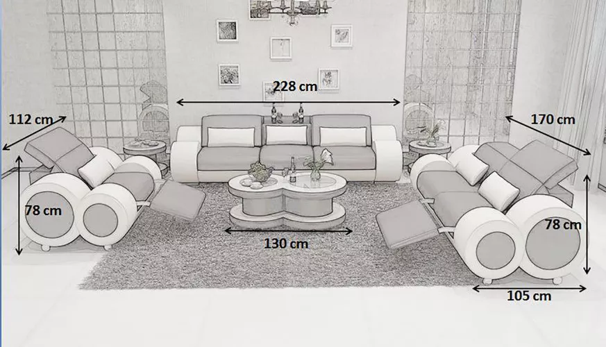 Erleben Sie pure Eleganz und Komfort mit unserer Wohnlandschaft Designer Sofa Sofagarnitur 3+2+1 Sitzer Ecksofa Polster Garnitur! Dieses hochwertige Premium-Produkt ist in verschiedenen Farben erhältlich, darunter Ocker, Safrangelb, Azurblau und vielen mehr - Sie haben die freie Farbwahl! Hergestellt aus Premium Lederfaserstoff (70% Leder / 30% Polyester), bietet dieses Designer-Sofa nicht nur Stil, sondern auch Langlebigkeit. Optional können Sie auch echtes Premium Echtleder, Textilstoff oder Vollleder wählen. Mit Maßen von ca. 112 x 105 x 78 cm für den 1 Sitzer, 170 x 105 x 78 cm für den 2 Sitzer und 228 x 105 x 78 cm für den 3 Sitzer, sowie einer angenehmen Sitzhöhe von ca. 42 cm und einer modernen Höhe von 78 cm, bietet dieses Ecksofa den perfekten Platz zum Entspannen. Das Innengestell aus echtem Holz und das Rindsleder aus Italien machen dieses Sofa nicht nur stilvoll, sondern auch robust und strapazierfähig. Sichern Sie sich noch heute Ihre Traum-Wohnlandschaft und tauchen Sie ein in eine Welt von Luxus und Gemütlichkeit!