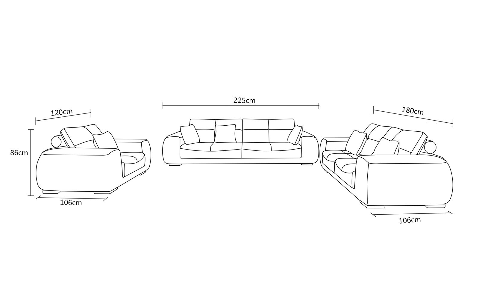 3 Sitzer:     ca. 225 x 106 x 86 cm