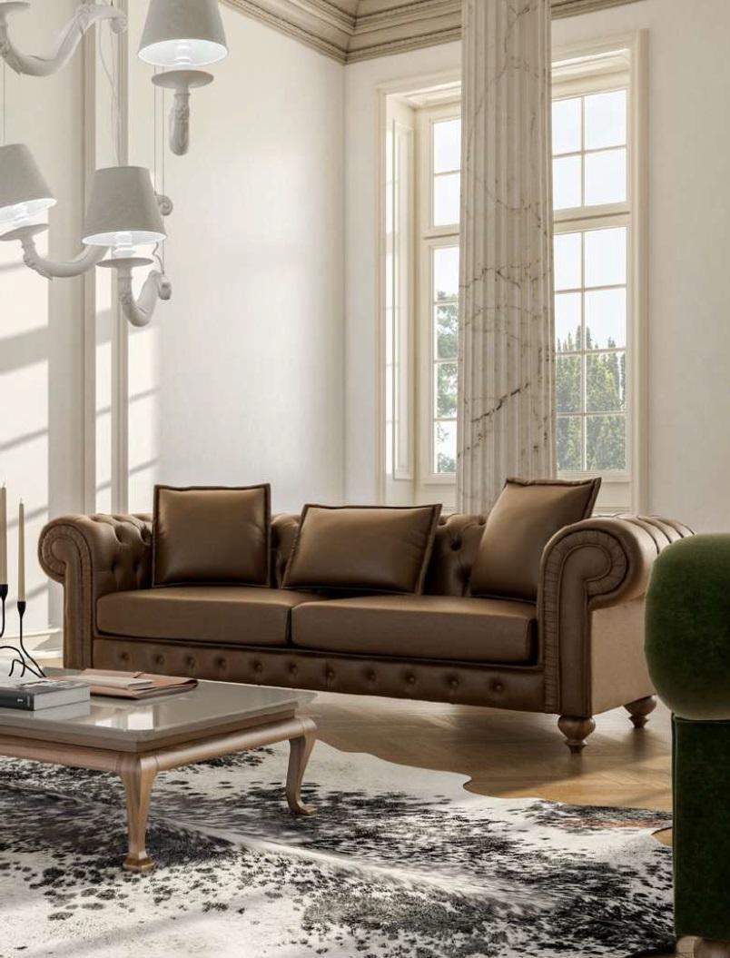 Braune Chesterfield Luxus Sofagarnitur Moderner Dreisitzer Sessel Textil