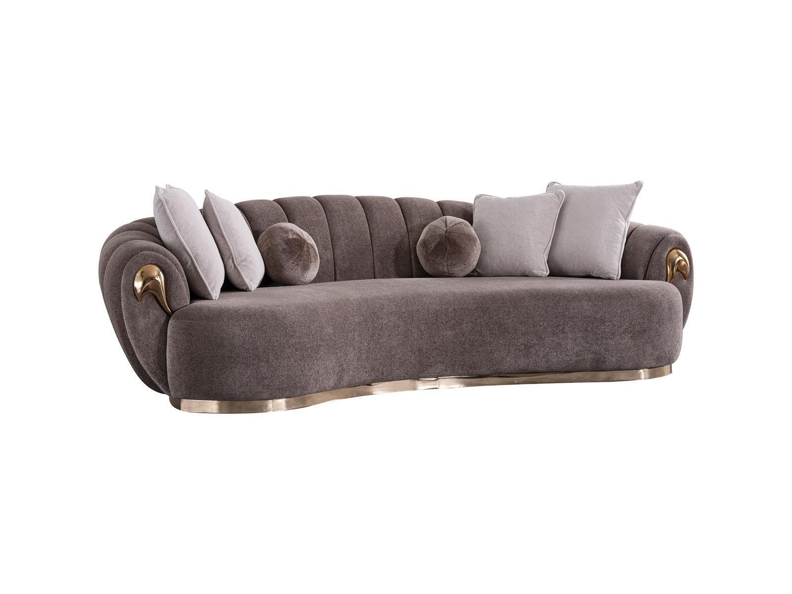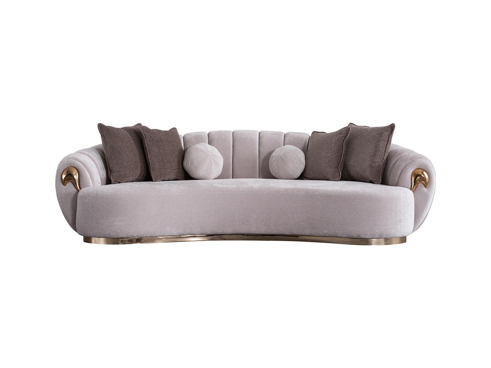 Bringen Sie mit unserer Luxus Wohnzimmer Sofagarnitur 3+3+1 Sitz Halb Runde Couchen Sofa mit Tisch 4tlg. Eleganz in Ihr Zuhause! Diese edle Polstergarnitur besteht aus zwei großzügigen 3-Sitzer-Sofas, einem stilvollen Sessel und einem passenden Couchtisch - perfekt für gemütliche Abende mit Familie und Freunden. Die Maße der Möbelstücke sind wie folgt: - 3-Sitzer-Sofas: ca. 263 x 125 x 75 cm (LxBxH) - Sessel: ca. 90 x 80 x 85 cm (LxBxH) - Couchtisch: ca. 60 x 60 x 55 cm (LxBxH) Hergestellt aus hochwertigem Holz und Metall mit Textilbezug, überzeugt diese Sofagarnitur nicht nur durch ihre exquisite Optik, sondern auch durch ihre Robustheit und Langlebigkeit. Das Innengestell besteht zudem aus echtem Holz, was für Stabilität und Sicherheit sorgt. In der Farbe wie abgebildet oder nach individueller Anfrage erhältlich, passt sich dieses exklusive Möbelstück Ihren persönlichen Vorlieben an. Bringen Sie Luxus in Ihr Wohnzimmer und gönnen Sie sich diesen einzigartigen Blickfang!