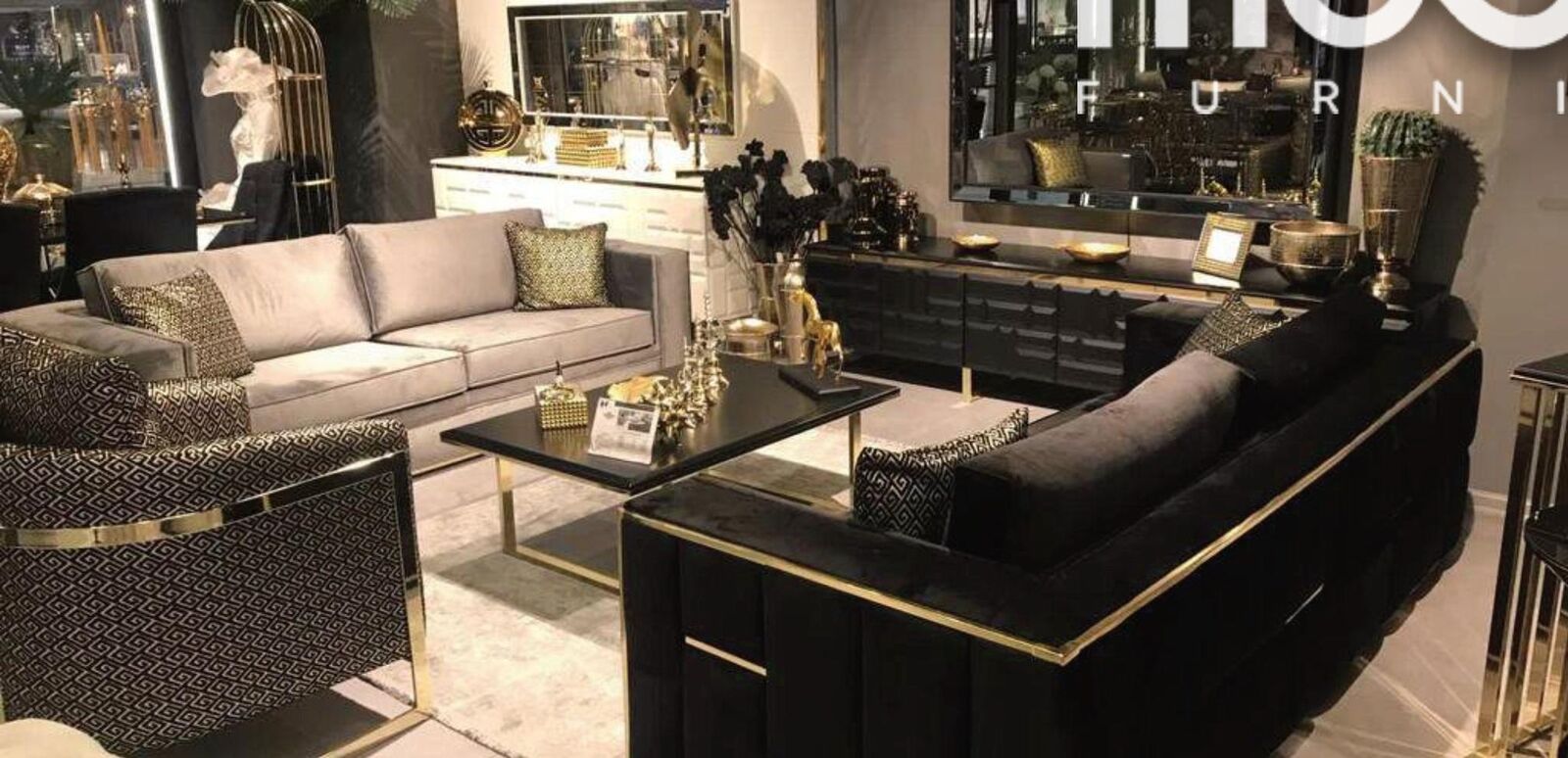 Sofagarnitur 3+3 Sitzer Sofa Sessel Sofas Luxus Garnitur Set Samt Stoff Gruppe