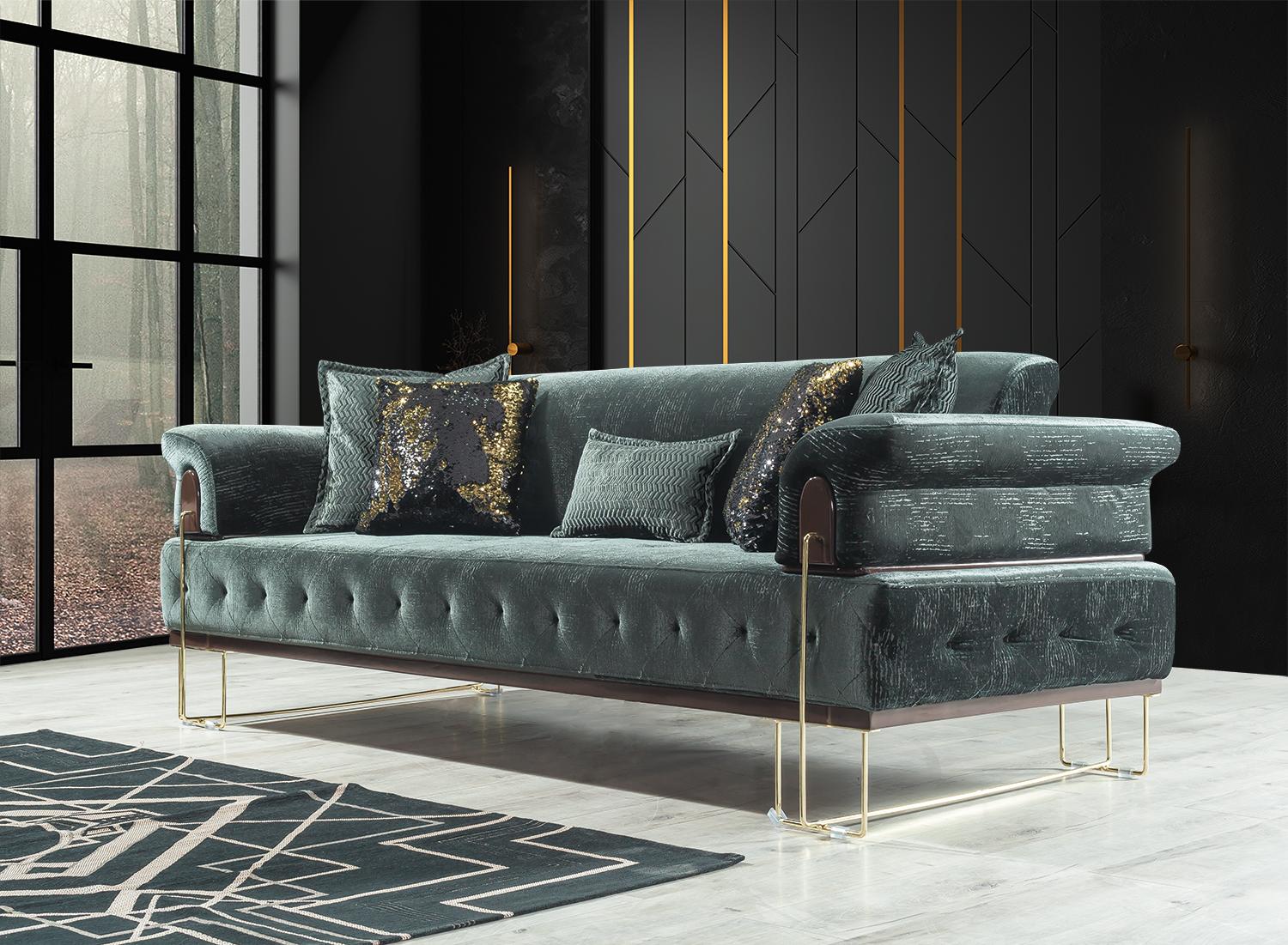 Entspannen Sie stilvoll mit unserer modernen Sofagarnitur! Diese hochwertige Garnitur besteht aus zwei 3-Sitzer-Sofas und einem bequemen Sessel, perfekt für gemütliche Abende zuhause. Die Maße der Sofas und des Sessels sorgen für optimalen Sitzkomfort, während das Metallgestell mit Textilbezug für Langlebigkeit und Eleganz sorgt. In unserem Sortiment stehen verschiedene Farben zur Auswahl, darunter Braun, Grün, Schwarz, Blau und viele mehr. Auch die Materialwahl ist kundenspezifisch anpassbar – ob Samt, Velours, Polyester, Kunstleder oder echtes Leder, bei uns finden Sie die perfekte Kombination für Ihr Wohnzimmer. Entdecken Sie jetzt die Möglichkeiten und lassen Sie sich von unserer Sofagarnitur in modernem Design überzeugen. Kontaktieren Sie uns für weitere Farboptionen und genießen Sie bald Ihr individuell gestaltetes Sofa zuhause!