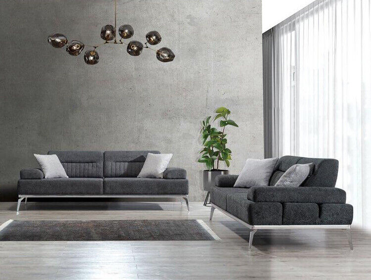 Stoffsofas Wohnzimmer-Set 2tlg. Grau Farbe Textil Material Modern Design