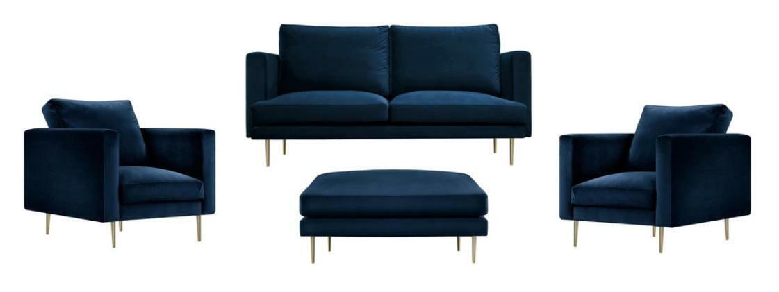 Sofa Gruppe sitz Sessel Hocker Möbel Textil Stoff Blau Zweisitzer Wohnzimmer neu