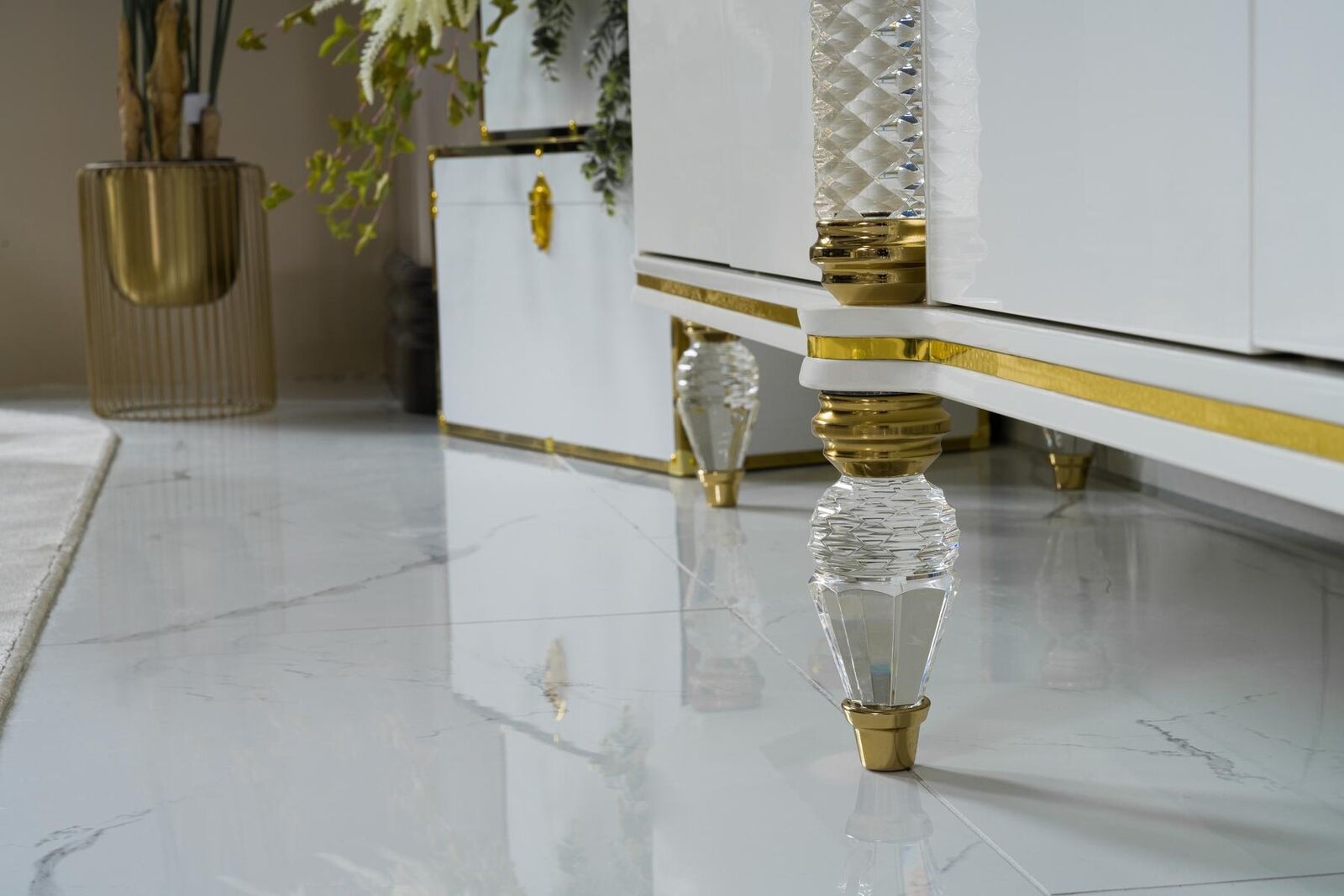 Entdecken Sie die perfekte Kombination aus Eleganz und Luxus mit unserer Anrichte Schrank Hochglanz Möbel Holz Luxus Kommode Sideboard Mit Spiegel Luxus! Hergestellt aus hochwertigem Holz, besticht dieses Möbelstück durch seine edle Optik und praktische Funktionalität. Mit Maßen von ca. 240 x 57 x 94 cm bietet das Sideboard mit Spiegel ausreichend Stauraum und verleiht Ihrem Zuhause eine stilvolle Note. Bestellen Sie jetzt und verwandeln Sie Ihr Wohnambiente in eine wahre Wohlfühloase!