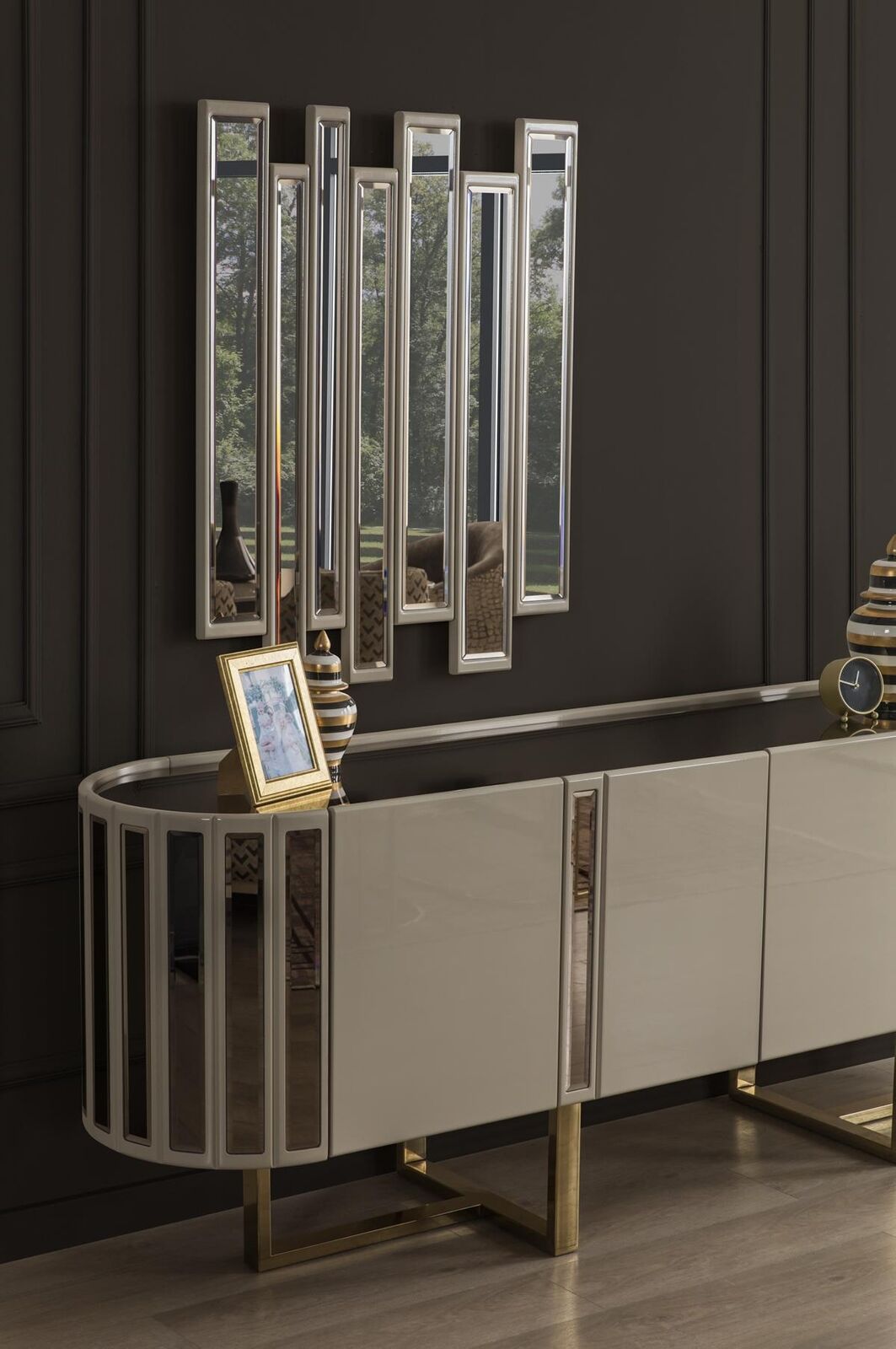 Entdecken Sie das atemberaubende Konsole Kommode Sideboard Schrank aus edlem Holz von XL Moebel! Mit einer Länge von ca. 215 cm, einer Breite von ca. 50 cm und einer Höhe von ca. 85 cm bietet dieses Designer Luxus Möbelstück nicht nur viel Stauraum, sondern ist auch ein echter Blickfang in Ihrem Zuhause. Die Innengestell aus echtem Holz verleiht dem Sideboard eine hochwertige Optik. In einem eleganten Design und in der Farbe wie abgebildet fügt sich dieses moderne Schmuckstück perfekt in jeden Raum ein. Holen Sie sich jetzt dieses exklusive Schmuckstück und bringen Sie Luxus und Modernität in Ihr Zuhause!