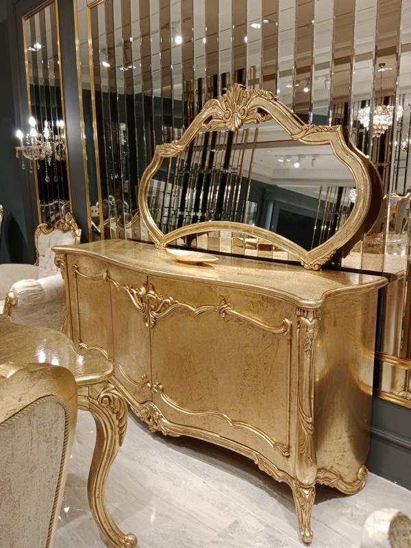 Luxus Sideboard Anrichte mit Spiegel Garnitur Kommode Holz Kommoden Klassische