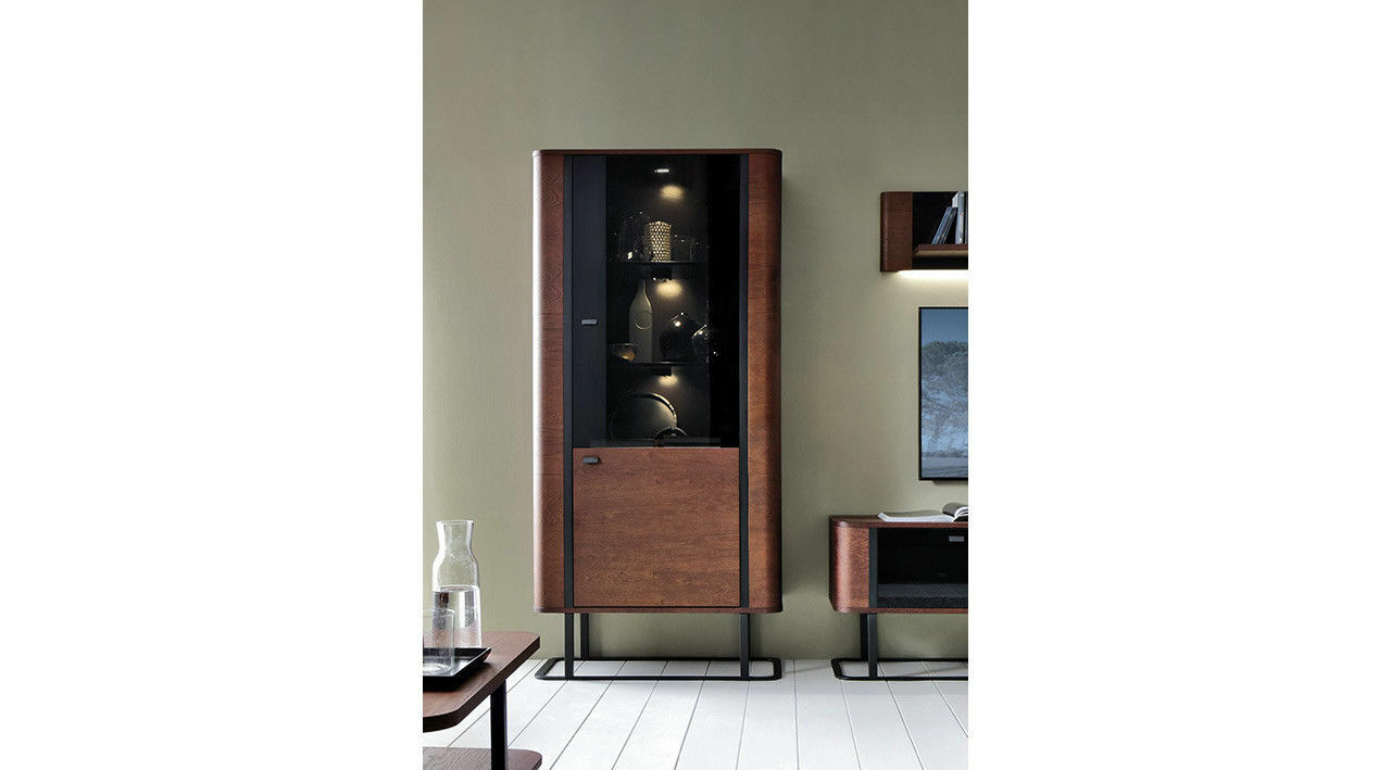 Rückwand & Einlegeböden: MDF (Mitteldichte Holzfaserplatte), furniert & lackiert