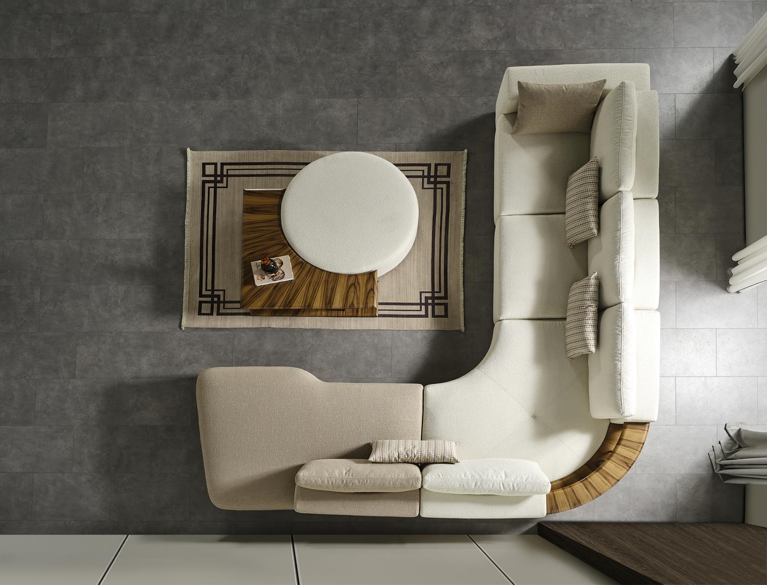 Couchtisch Tisch Beistelltisch Wohnzimmer Modern Weiß Rund Stoff Holz