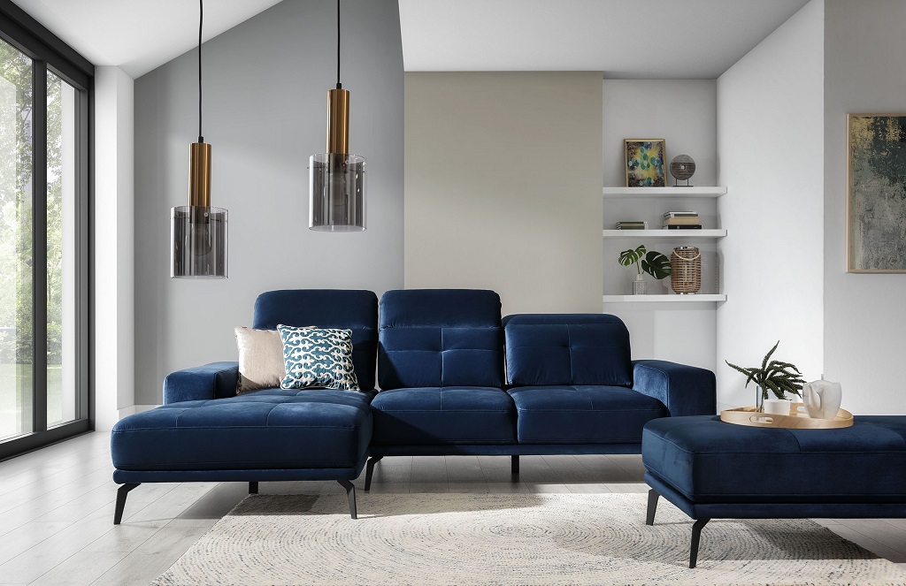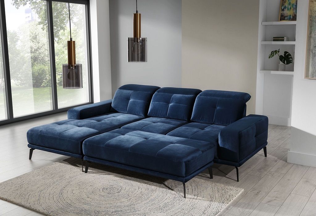 Designer Sofa Couch Ecksofa Textil Polster Garnitur Wohnlandschaft L-Form Blaue