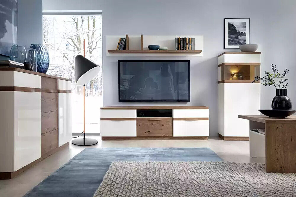 TV Ständer Fernseher Wand Wohnwand Low board weiß Hochglanz tv Ständer