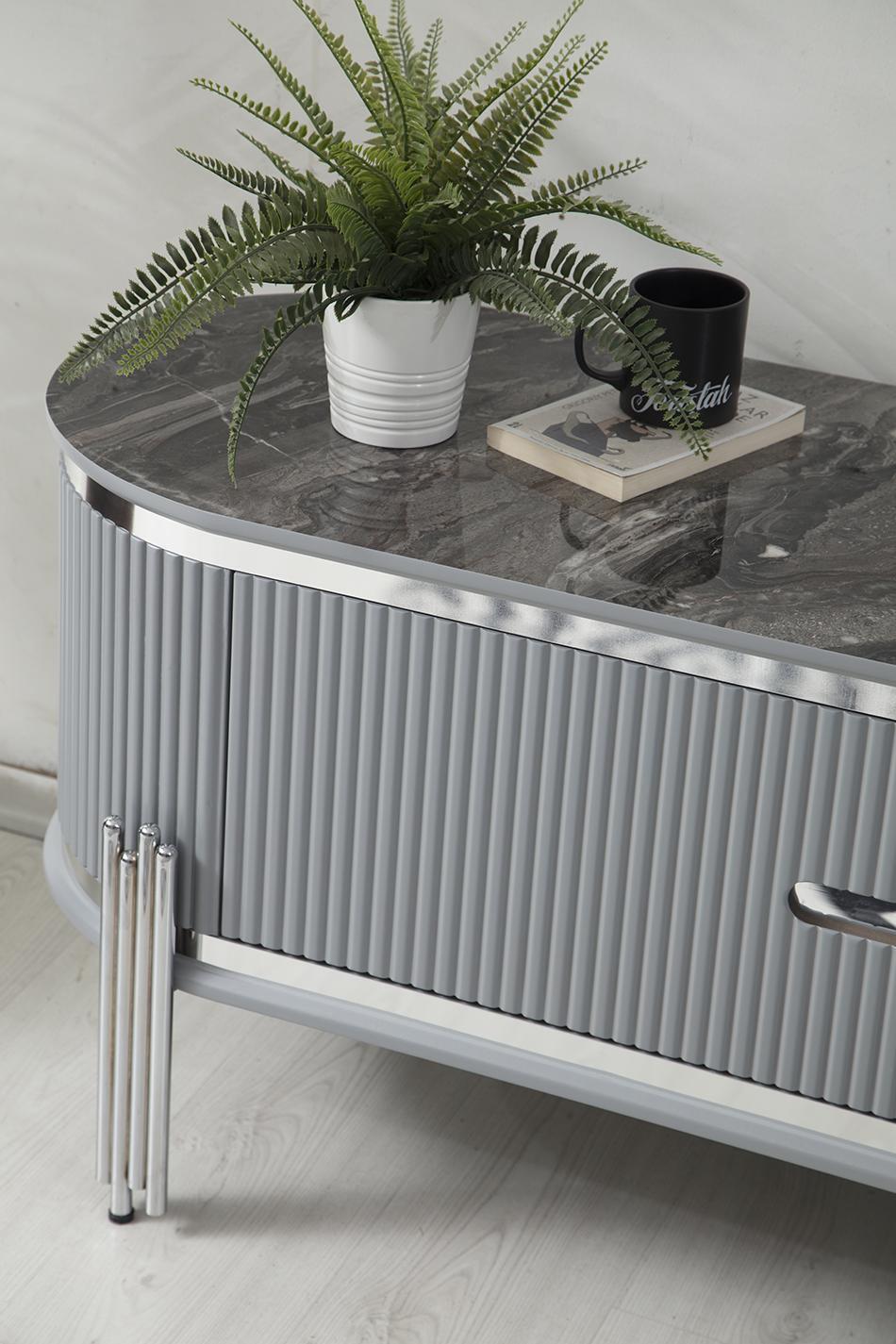 Modern TV Stand, Gray Luxury, Lowboard, Neu