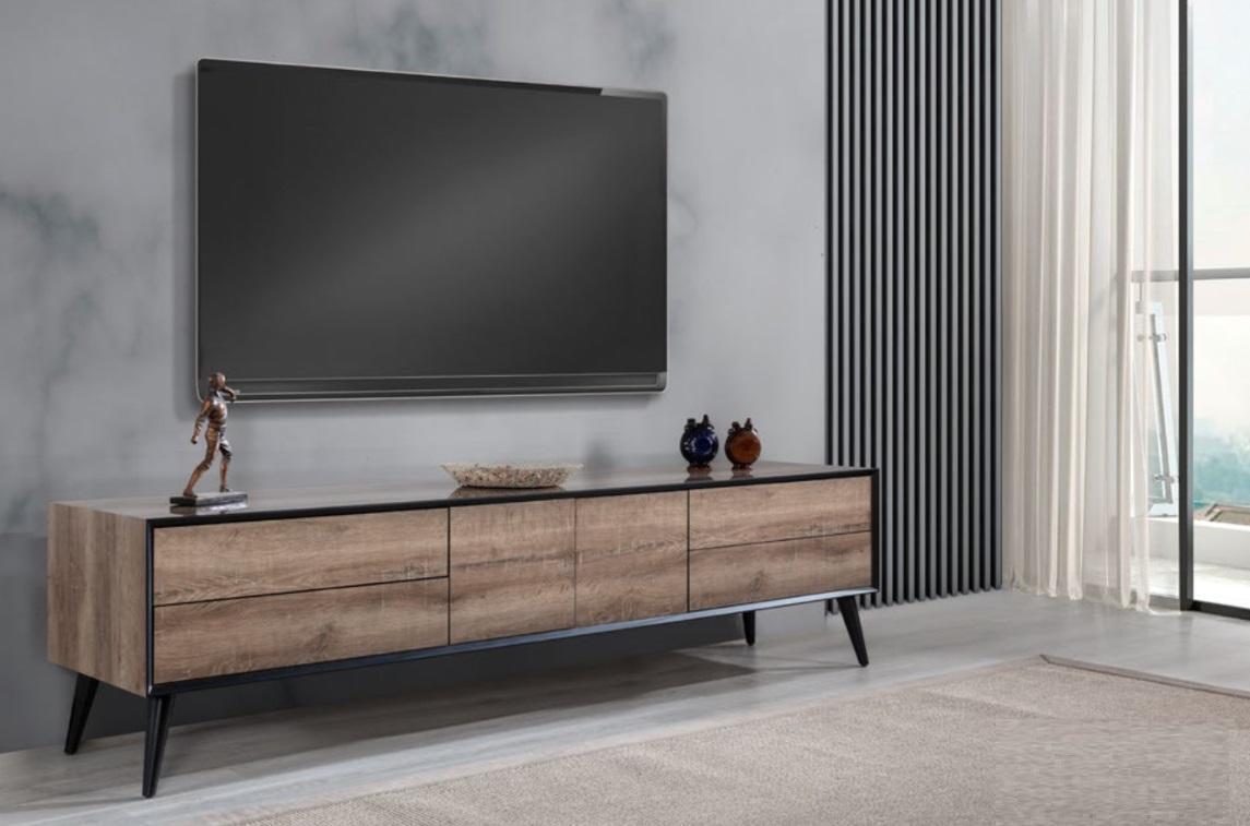 Entdecken Sie den TV Ständer RTV Lowboard für ein modernes Wohnzimmer! Dieses stilvolle Sideboard in Braun aus hochwertigem Holz ist nicht nur funktional, sondern auch ein echter Hingucker. Mit einer Länge von ca. 200 cm, einer Breite von ca. 42 cm und einer Höhe von ca. 55 cm bietet dieser TV-Tisch genügend Platz für Ihren Fernseher sowie weiteres Zubehör. Das zeitlose Design passt ideal zu jeder Einrichtung und verleiht Ihrem Wohnzimmer eine gemütliche Atmosphäre. Holen Sie sich jetzt dieses moderne Möbelstück von XL Moebel und genießen Sie stilvolle Unterhaltungseinheiten!
