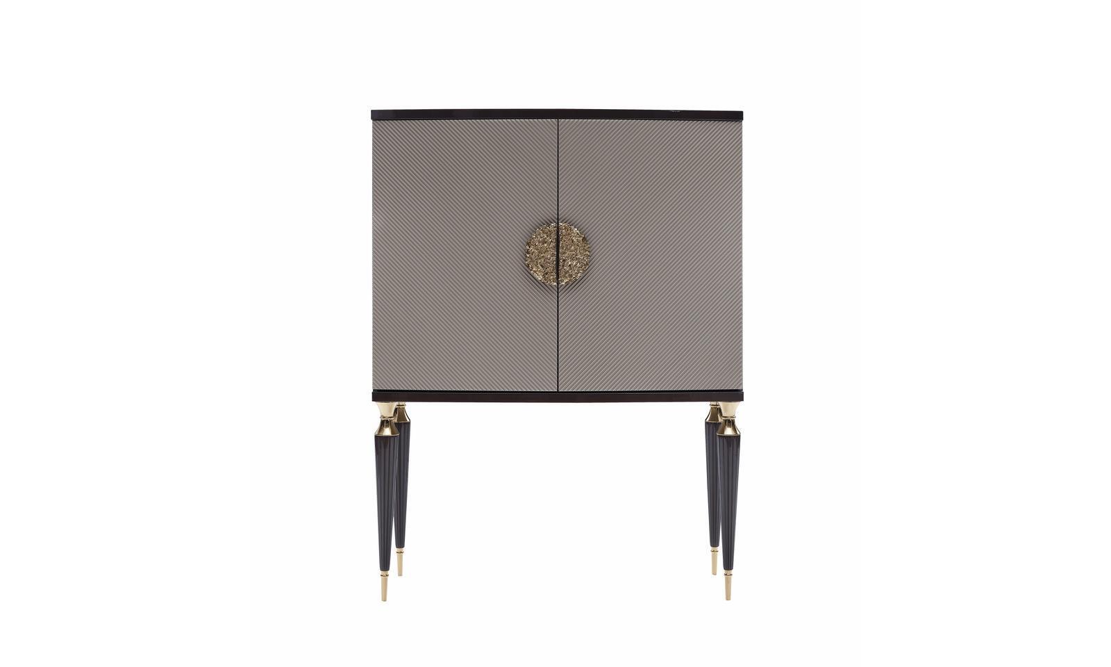 Garnitur Sessel Barschrank Grau Stoff Ohrensessel Bar Wohnzimmer Set