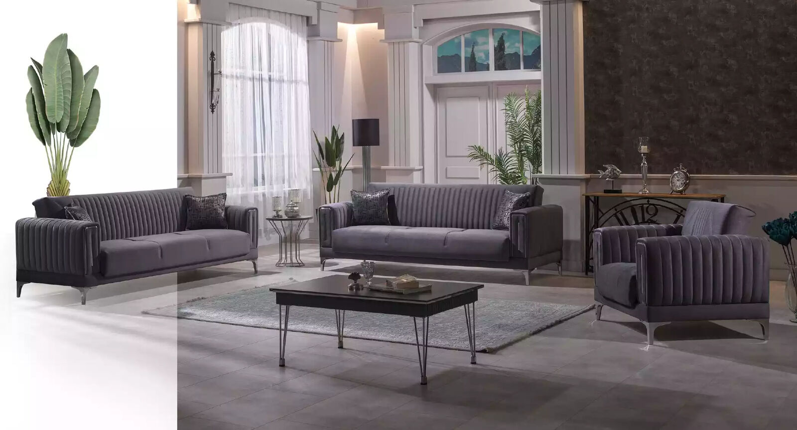 Erleben Sie Luxus und Komfort mit unserem grauen Dreisitzer Wohnzimmer Sofa! Hergestellt aus hochwertigem Holz und samtigem Textil bietet dieses Möbelstück nicht nur eine attraktive Optik, sondern auch eine gemütliche Sitzgelegenheit in Ihrem Wohnzimmer. Mit Maßen von ca. 230 x 85 x 85 cm und einer Sitzhöhe von ca. 44 cm bietet dieses Sofa ausreichend Platz für entspannte Abende allein oder mit Ihren Liebsten. Das elegante Design in Grau passt problemlos zu verschiedenen Einrichtungsstilen und sorgt für eine moderne Atmosphäre in Ihrem Zuhause. Holen Sie sich jetzt dieses luxuriöse Möbelstück und machen Sie Ihr Wohnzimmer zu einer stilvollen Wohlfühloase!