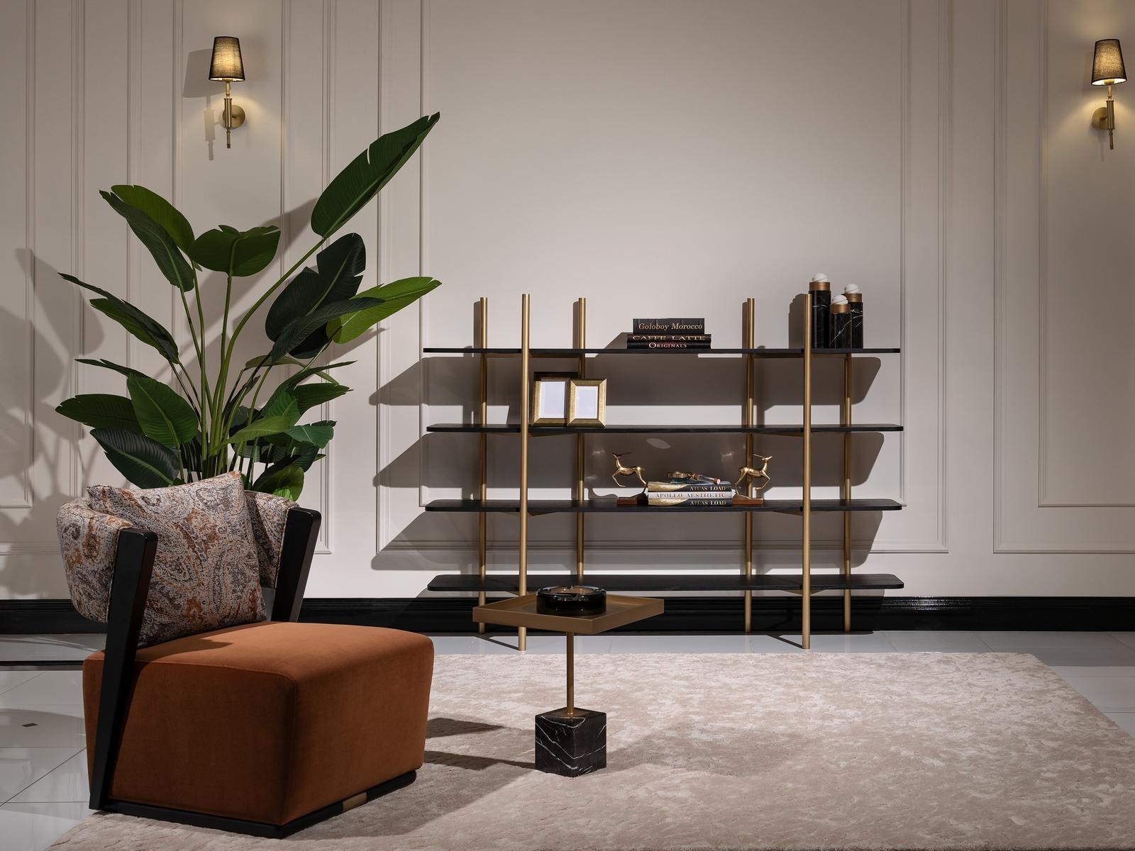 Garnitur Sessel Stoff Beistelltische Regale Set 4tlg Wohnzimmer Orange