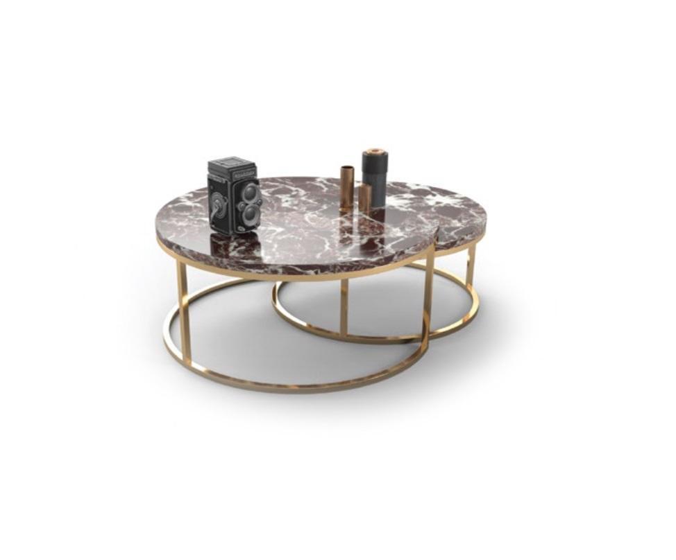 Luxus Marmor Couchtisch + Beistelltisch Set Runde Wohnzimmer Tische 2tlg