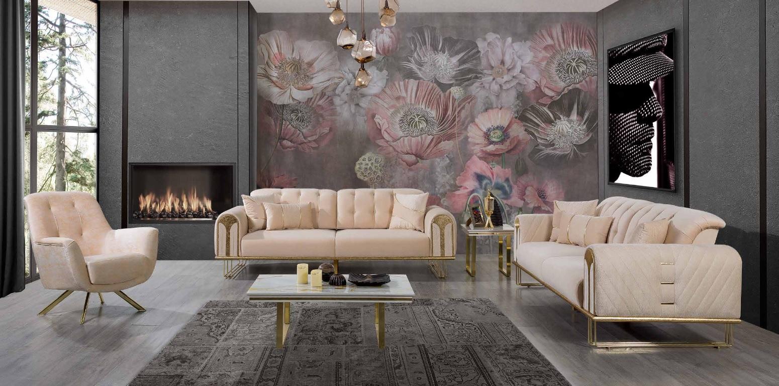 Moderne Sofagarnitur, Beiges Wohnzimmer, Hochwertige Verarbeitung