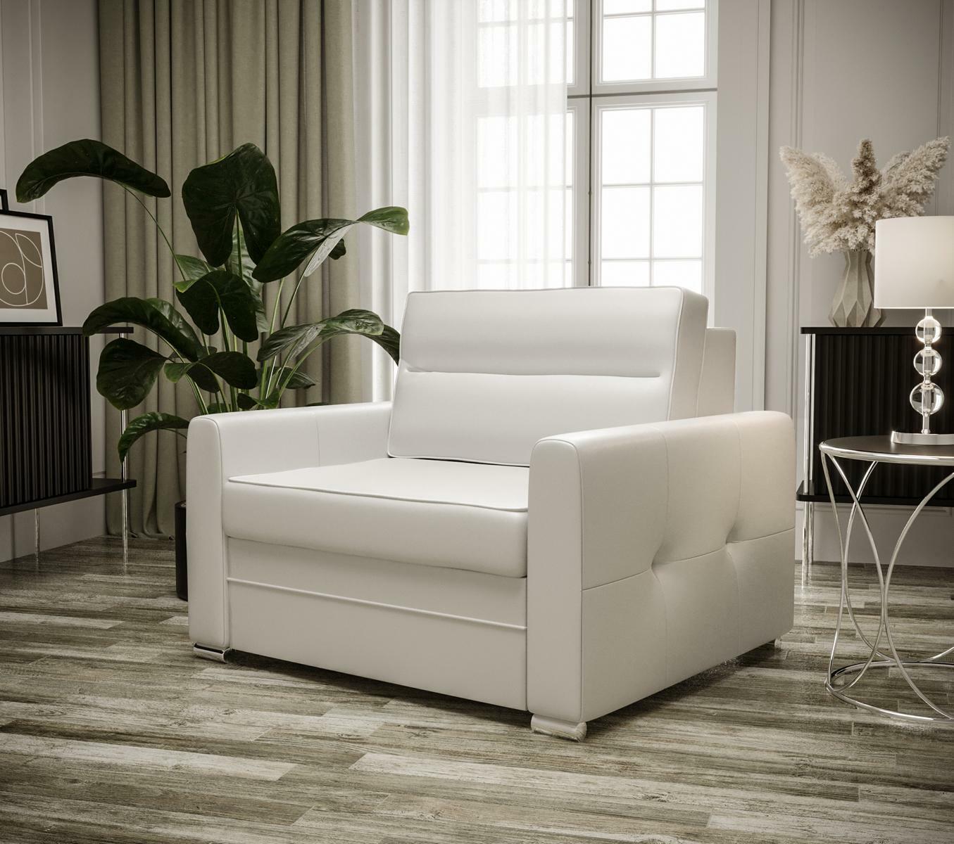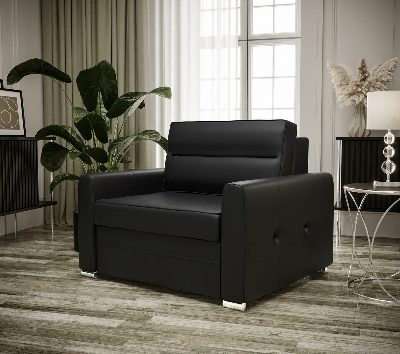 Entspannen Sie in Stil und Komfort mit unserem Relax Stoff Textil Lounge Fernseh 1 Sitzer Sessel! Dieses moderne und elegante Designstück wird Ihr Zuhause bereichern und für gemütliche Stunden sorgen. Die Maße des Sessels betragen ca. 100 x 100 x 95 cm, mit einer bequemen Sitztiefe von ca. 62 cm und einer angenehmen Sitzhöhe von ca. 42 cm. Sie haben die Möglichkeit, aus einer Vielzahl von Farben und Materialien zu wählen, darunter Samt, Velours, Polyester, Kunstleder oder echtes Leder. Das hochwertige Innengestell aus echtem Holz und der komfortable Federkern sorgen für Langlebigkeit und Bequemlichkeit. Optional können Sie den Sessel mit einem Bettkasten und gegen Aufpreis mit einer Unterboden LED Beleuchtung ausstatten. Nutzen Sie die Chance, Ihr Möbelstück nach Ihren eigenen Vorstellungen anzupassen - denn Ihre Zufriedenheit liegt uns am Herzen. Bestellen Sie noch heute Ihren individuellen 1 Sitzer Sessel und gönnen Sie sich einen Hauch von Luxus in Ihrem Zuhause!