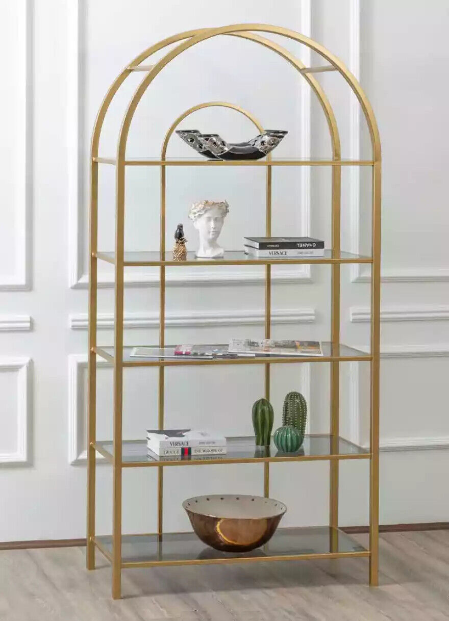 Wohnzimmer Regal Raumteiler Standregal Bücherschrank Aufbewahrung Gold
