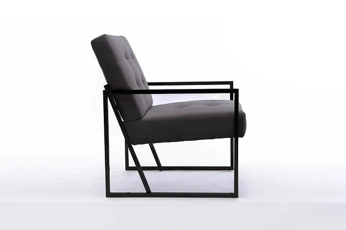 Schicker grauer Sessel, Stilvoller Sessel auf Metallbeinen, Moderne Einrichtung