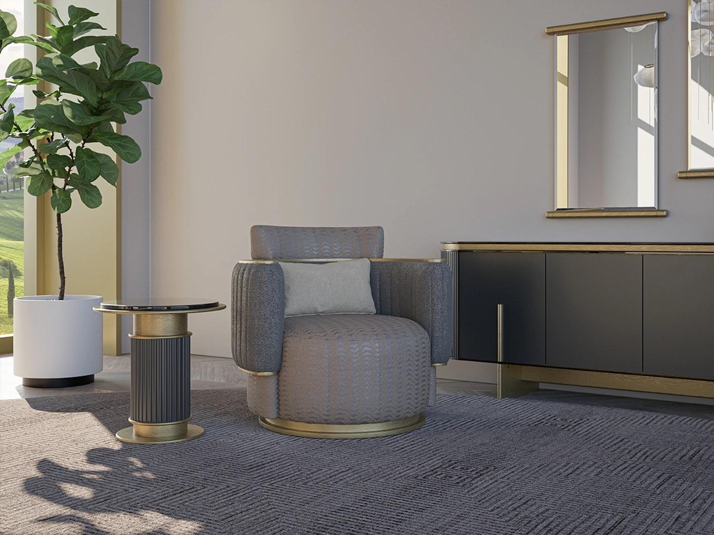 Wohnzimmer Einrichtung Grau Sessel Polster Textil Modern Polstermöbel Neu