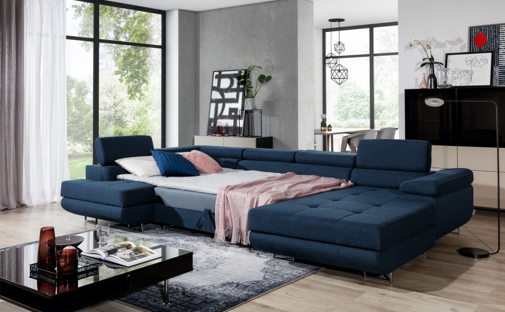 Hol dir jetzt die luxuriöse Stoff U-Form Couch Wohnlandschaft Ecksofa Garnitur im modernen Design! Dieses Ecksofa bietet nicht nur Komfort, sondern auch Stil für dein Zuhause. Mit XL Möbel erhältst du die Möglichkeit, aus einer Vielzahl von Farben wie Zyan, Amethyst, Flieder, Burgunderrot und vielen mehr zu wählen. Die Maße der U-Form Couch sind wie folgt: linke Seite ca. 202 cm, Mitte ca. 345 cm, rechte Seite ca. 202 cm. Die Höhe beträgt ca. 90 cm mit einer bequemen Sitztiefe von ca. 58 cm und einer Sitzhöhe von ca. 43 cm. Der Schlafbereich misst 125 x 266 cm. Wähle aus unterschiedlichen Stoffgruppen und entscheide dich für die perfekte Ausführung, die zu dir passt. Bestelle jetzt und verleihe deinem Wohnzimmer ein modernes Flair mit dieser exquisiten Wohnlandschaft!