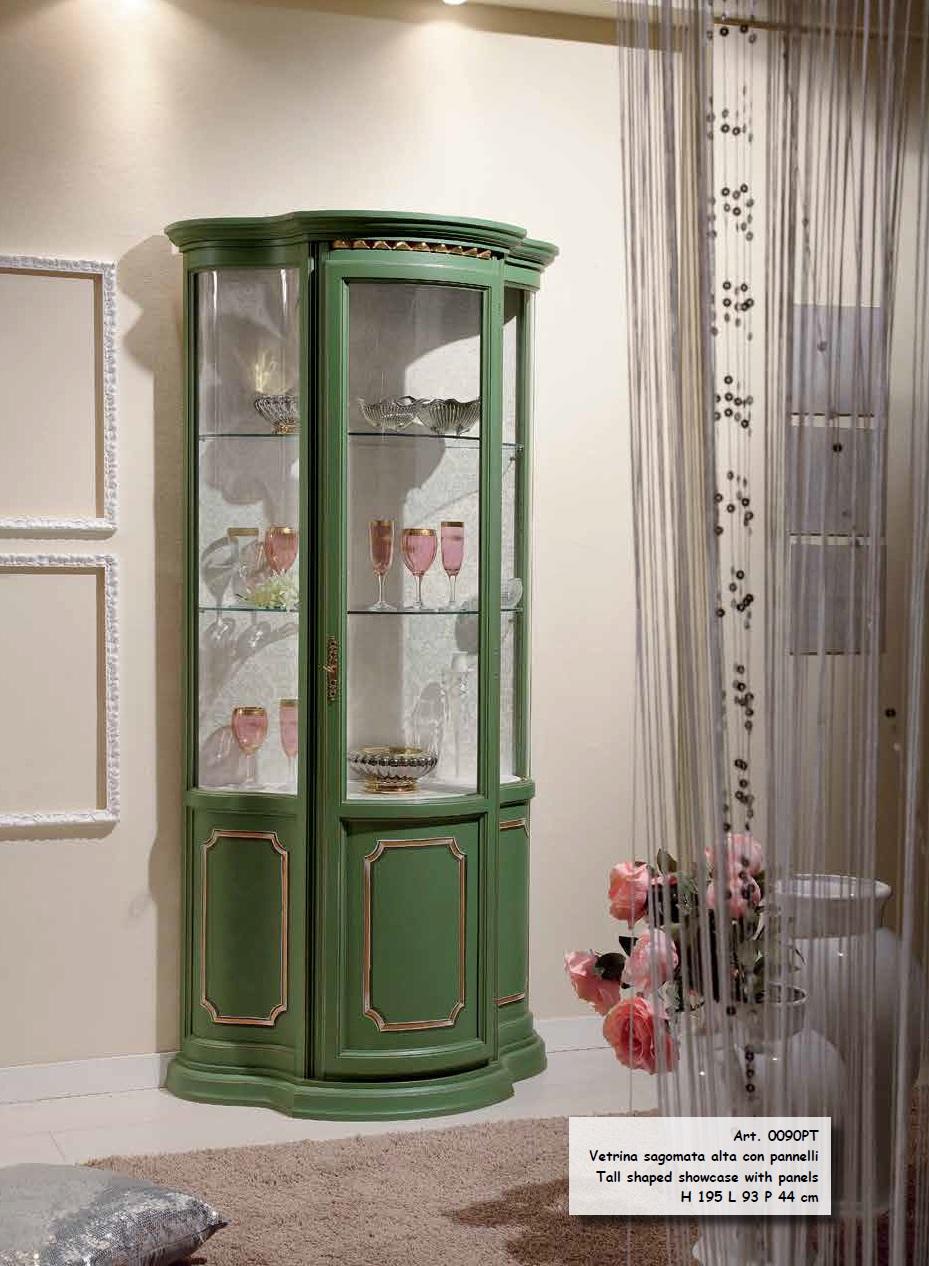 Halber Schrank Vitrinen Glas Schrank Vitrine Holz Wohnzimmer Luxus Grün Anrichte
