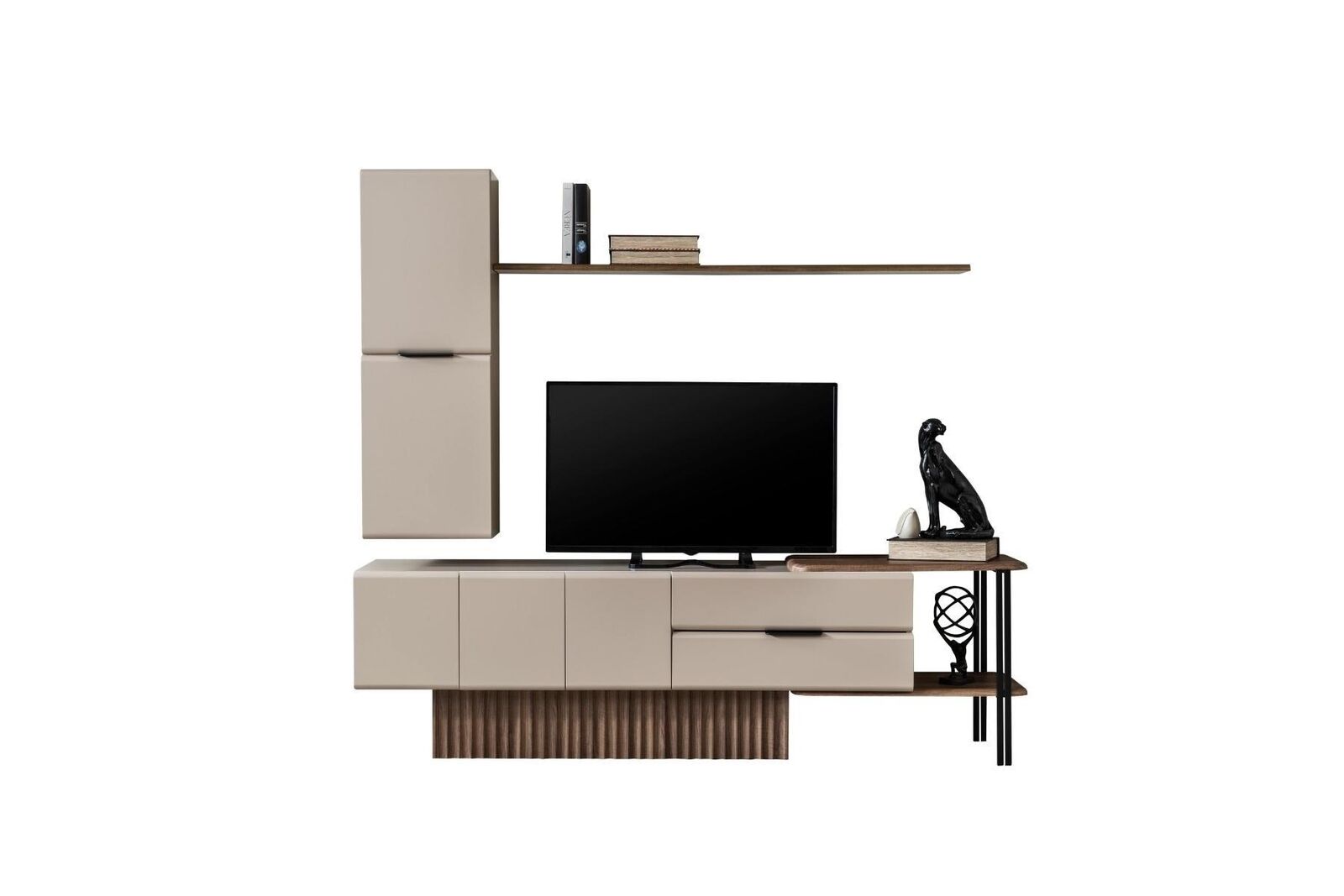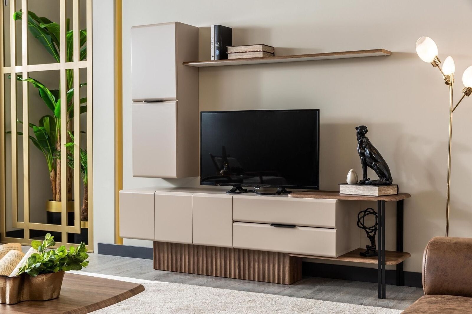 Entdecken Sie die stilvolle Wohnwand TV Ständer Wandschrank RTV Lowboard in Beige aus Holz! Diese elegante Lösung von XL Möbel passt perfekt in Ihr Wohnzimmer und bietet viel Stauraum für Ihre Unterhaltungselektronik. Die Maße des TV-Schranks betragen ca. 215 cm Länge, 48 cm Breite und 64 cm Höhe, während das Wandpanel ca. 211 cm Länge, 32 cm Breite und 120 cm Höhe misst. Hergestellt aus hochwertigem Holz, fügt sich dieser Wandschrank harmonisch in jedes Wohnambiente ein. Sorgen Sie für Ordnung und Eleganz in Ihrem Zuhause mit dieser praktischen Wohnwand!
