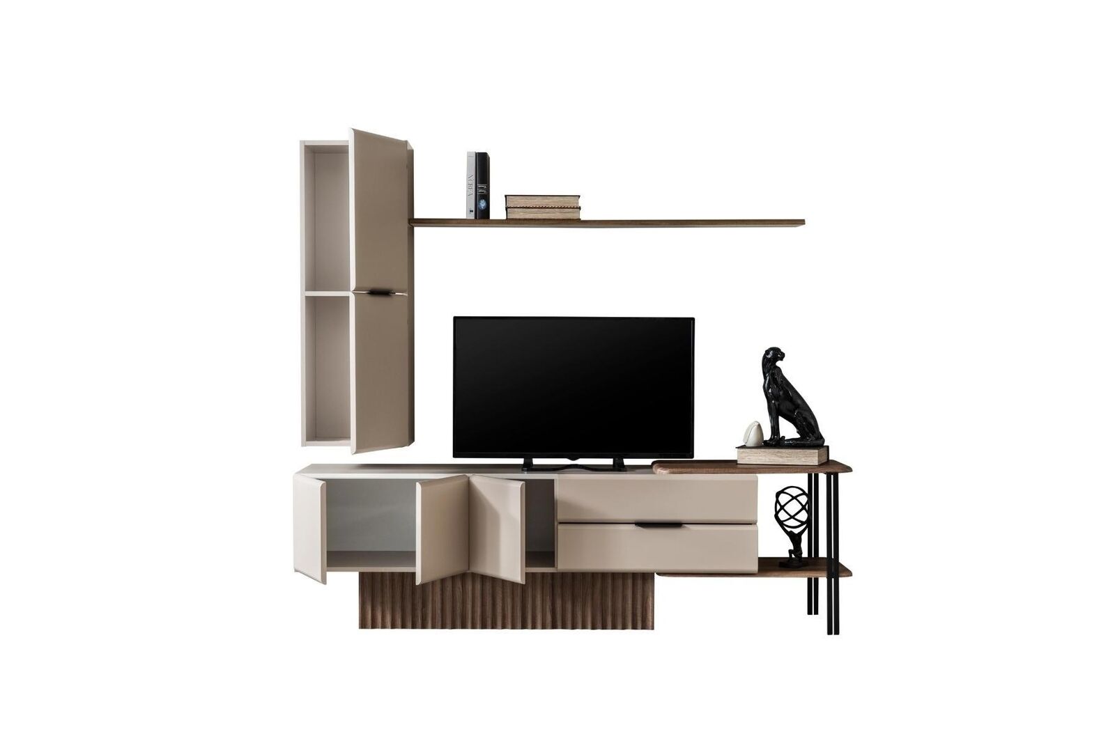Wohnwand TV Ständer Wandschrank RTV Lowboard Beige Holz Regale
