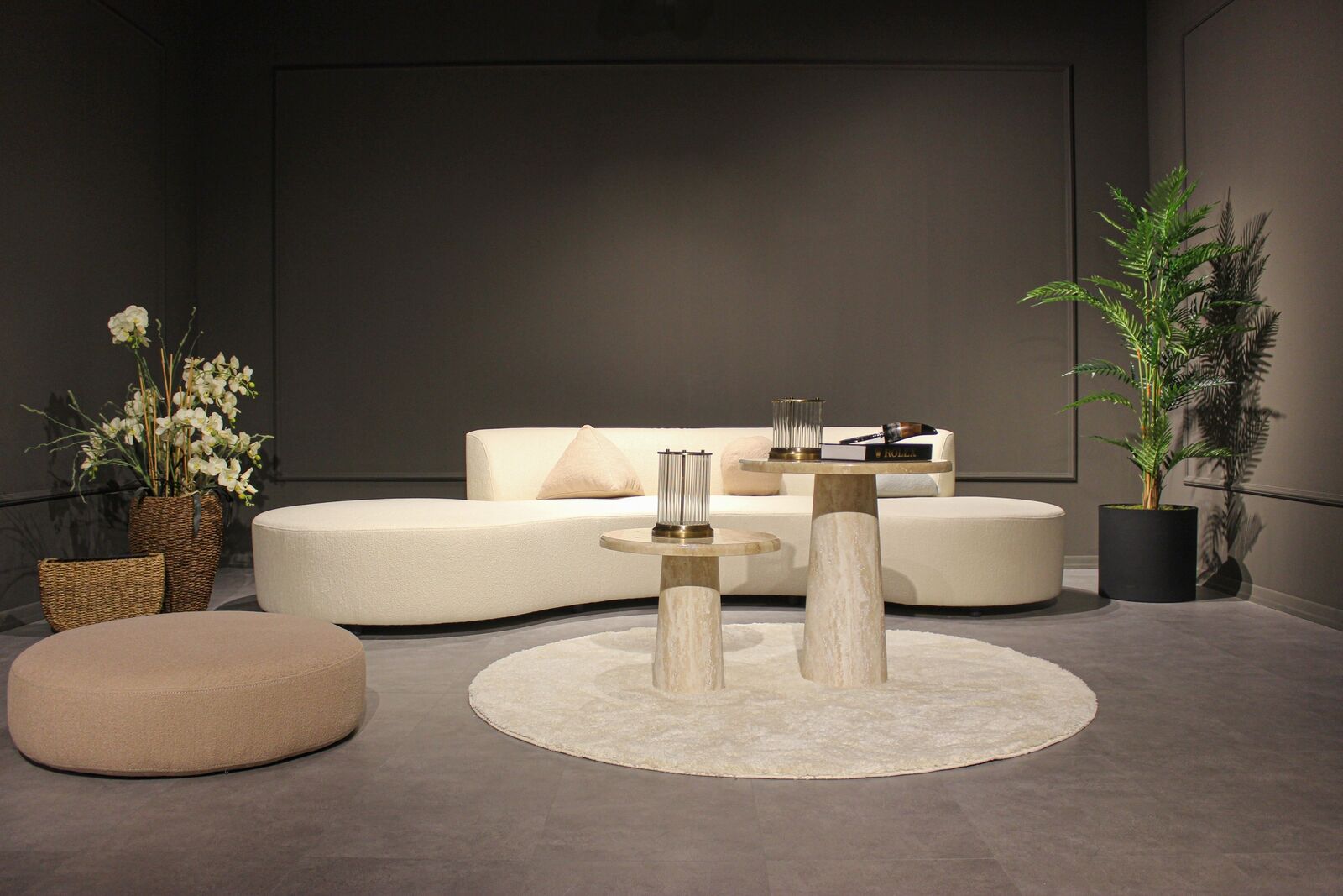 Entdecken Sie das Wohnzimmer-Set Sofa Viersitzer Couch Design Couchtisch Hocker Textil Möbel von XL Mobel! Verleihen Sie Ihrem Wohnzimmer mit diesem zauberhaften Möbel-Set eine einladende und stilvolle Atmosphäre. Das Set umfasst ein geräumiges Viersitzer-Sofa (ca. 320 x 120 x 70 cm), einen eleganten Couchtisch (Ф 60 x 60 cm), einen praktischen kleineren Couchtisch (Ф 50 x 40 cm) und einen bequemen Hocker (Ф 80 x 20 cm). Alle Teile sind aus hochwertigem Holz gefertigt und in der Farbe wie abgebildet erhältlich. Profitieren Sie von der großen Auswahl und Qualität von XL Mobel für Ihr Zuhause!
